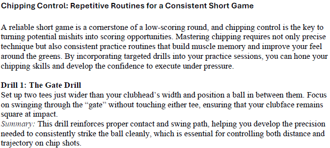 Inside, you'll find sixteen designed drills that target every element of your play—from explosive distance drills that boost your driving power to precision approach and putting routines that shave strokes off your round. Each drill is presented with clear, actionable instructions and real-life examples that make it easy to see how these techniques work in practice. With our hands-on drills, you'll build muscle memory, improve your consistency, and learn to adapt under pressure, ensuring you perform at your peak on every hole.